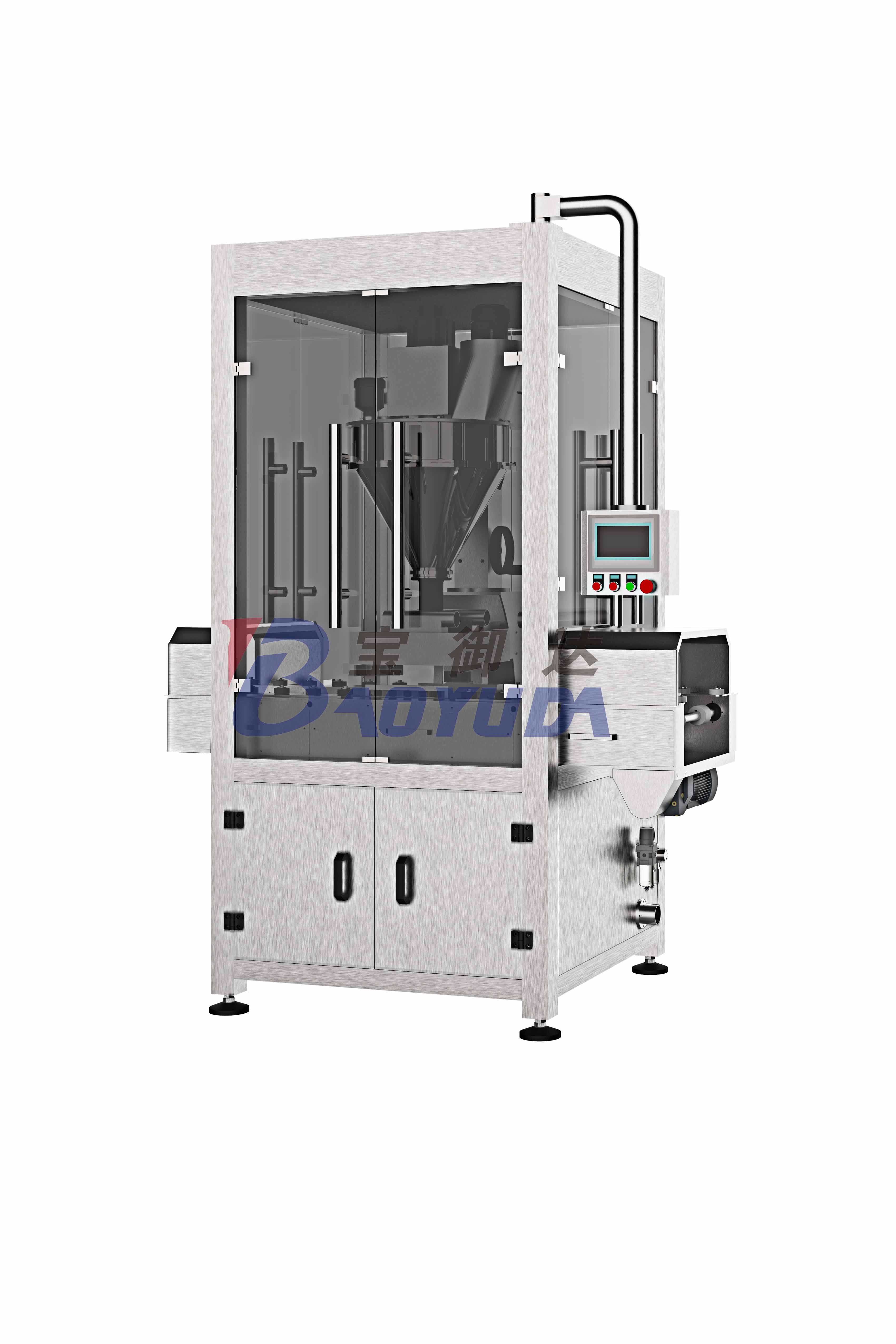 垂直螺旋充填,伺服電機(jī)驅(qū)動,根據(jù)重量變化自動調(diào)節(jié)螺旋轉(zhuǎn)速。