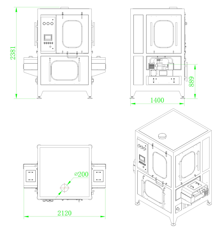 該機(jī)主要針對電池正、負(fù)材料在燒結(jié)前端的匣缽計量灌裝而開發(fā)設(shè)計,根據(jù)裝設(shè)定螺旋脈沖數(shù)快速速充填、計量、在線移動等工作。具有精度高、揚塵小、匣缽內(nèi)物料平面平整等優(yōu)勢,主要有計量機(jī)頭、移動平臺組件、輸送組件、除塵機(jī)構(gòu)、電控部分、機(jī)柜等組成。該機(jī)為邊移動邊下料的工作模式,移動方式為輸送機(jī)移動。