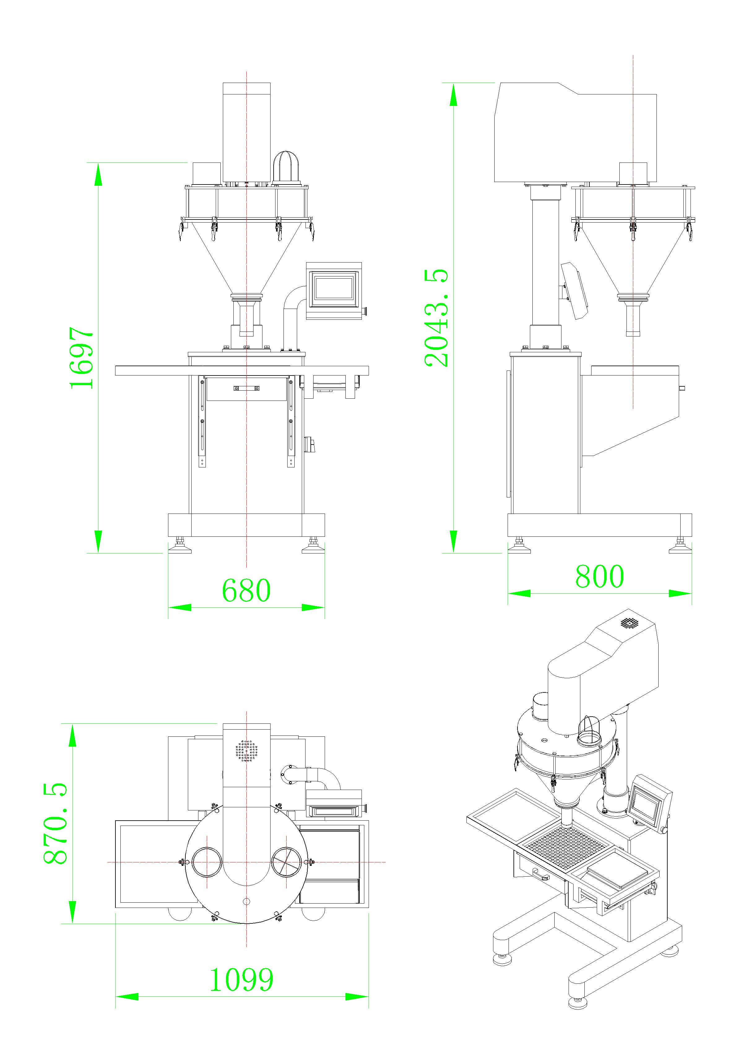 設(shè)計(jì)成稱重反饋比重跟蹤式,克服了因物料比重變化而致使包裝重量發(fā)生變化的缺點(diǎn)。